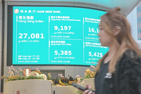 【香港中通社2月23日電】(記者 譚暢)美國最高法院駁回特朗普的關稅政策,港股23日顯著上升,重越兩萬七點關口。恆生指數全日升668點或2.5%,報27081點。大市全日成交額約為1729.6億港元。 當天,恆指高開385點,報26798點,其後在買盤支持下進一步急升743點至27156點,方漸受…