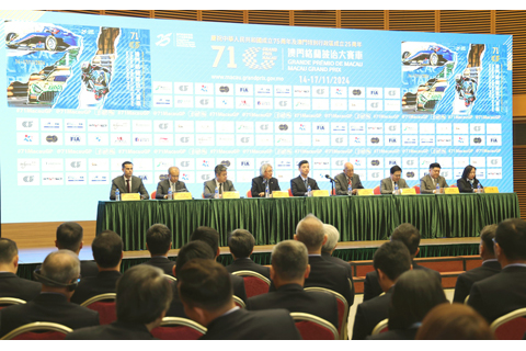 【特訊】澳門年度國際體壇盛事─「慶祝中華人民共和國成立75周年及澳門特別行政區成立25周年-第71屆澳門格蘭披治大賽車」將於11月14日至17日舉行。澳門格蘭披治大賽車組織委員會(下稱大賽車組委會)昨日假澳門科學館會議廳舉行新聞發佈會,公佈賽事及贊助商等資訊。