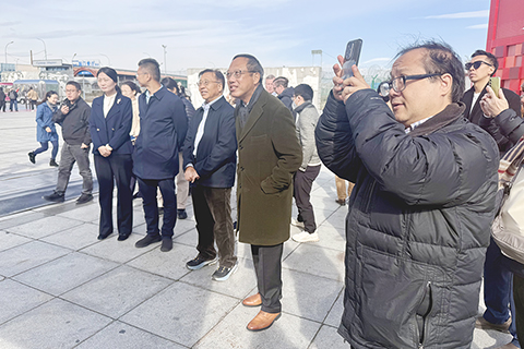 在霍爾果斯市,參訪團對第六代國門的巍峨雄偉感到震撼,更驚嘆口岸先進的電子通關係統和貨物車輛出入境速度。參訪團並進入中哈霍爾果斯國際邊境合作中心,實地了解貿易往來情況,對「一園兩國」的創造性合作模式表示欽佩。◇