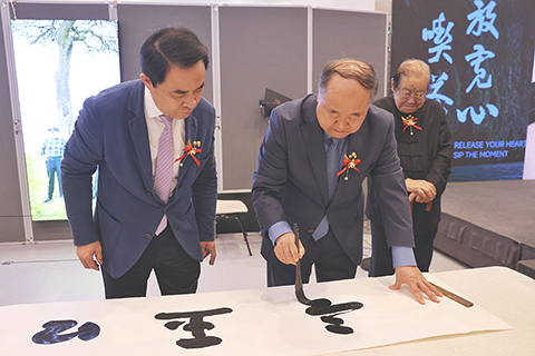 【香港中通社十月十八日電】(記者 陳卓儀)中國知名作家、諾貝爾文學獎得主莫言與中國書法家王振攜手呈現的「放寬心.吃茶去」書法攝影展,十月十八日至十一月三日在香港中央圖書館展出。展覽以「文墨共生」為核心主題,將兩人同名隨筆集《放寬心,吃茶去》的旅行創作歷程,打造成一場沉浸式視覺文化盛宴。