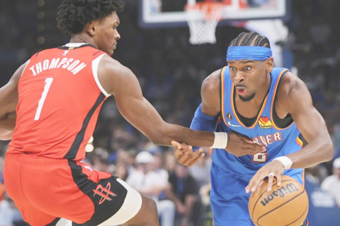 【特訊】美國職業男子籃球聯賽NBA新一季賽事昨早展開,揭幕戰由衛冕冠軍奧克拉荷馬雷霆,在主場打至雙加時之下,以125:124擊敗休斯敦火箭。雷霆全隊職球員在開賽前先領取上季的總冠軍戒指,主場館升起隊史首面總冠軍旗幟。兩支今季的冠軍熱門球隊今場打得緊湊,雷霆在第二節中段進攻突然啞火,火箭在土耳其中鋒森根帶領下,一度把分差拉開至兩位數,雷霆有艾積米曹完半前射入三分兼博得罰球,半場落後51:57。兩隊換邊後繼續纏鬥,新加盟火箭的杜蘭特常規時間完結前「手軟」兩罰中一,落後兩分的雷霆由上季得分王兼「雙料MVP」阿歷山大射入關鍵中距離追平,要進入加時。第一個加時賽尾段,賀姆格連射入三分幫助雷霆掌握主動,火箭有森根挺身而出,搶到進攻籃板後「入樽」追和,要繼續加時。第二個加時賽,阿歷山大最後時刻博到杜蘭特犯規兩罰全中,火箭的史密斯射失最後一擊,雷霆以1分之微險勝,取得開門紅。數據方面,雷霆的阿歷山大射入35分,賀姆格連28分7籃板。火箭有申根取得全場最高39分,另有11個籃板7次助攻,杜蘭特23分9籃板,亞文湯遜18分。