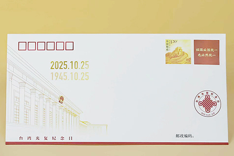 10月25日是台灣光復紀念日,中國集郵有限公司發行紀念封一套一枚。