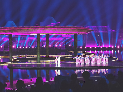 當晚的開幕式以天然水景為幕、園林空間為台,通過「戲夢」主題的篇章式叙事,生動展現了湯顯祖與莎士比亞跨越時空的精神共鳴。昆曲《三生一夢·牡丹亭》、越劇戲腔《神女劈觀》、盱河高腔《紫釵記》、跨界戲劇《湯莎會》等節目輪番上演,向中外嘉賓奉上一場融匯東西的戲劇盛宴。