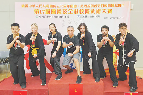 ◎ 十一月一日,美國武術家魯迪Rudy Ibarra(中)帶領他的團隊,分別來自不同的國家的學生參加了中國香港南北國術總會舉辦的「香港第十七屆國際和全港校際武術大賽」,六個學生分別贏得了五枚金牌和六枚銀牌。居住香港傳播中華武術的美國師傅,武術家魯迪年輕時期曾在北京體育大學及清華大學學習武術,也前赴少林寺;他的足跡遍佈湖南、福建等地,最後在福州機緣巧合接觸了中華武術流派「自然門」,為之著迷。「自然門」是一個中國武術流派,創始於民國初年。始祖就是世稱「徐俠客」的徐矮師。孫中山保鏢「南北大俠」杜心武就是師承徐矮師,後再傳萬籟聲,五十年代至九十年代萬籟聲將自然門發揚光大。Rudy的誠心與努力,也讓他有機會拜入自然門大師萬籟聲入室弟子之一呂耀欽門下,成為首個被呂耀欽接納為正式弟子的外國人。如今,魯迪師傅扎根香港的同時,也在為中國武術「開枝散葉」。希望把中國的好東西,「傳」出去。瑞士、俄羅斯、美國、墨西哥、印尼、新加坡……魯迪Rudy的學生同樣遍佈世界各地。(香港中通社)