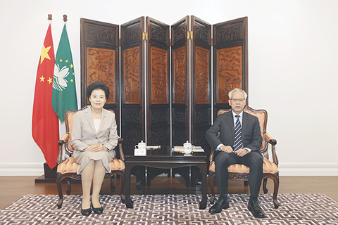 【特訊】行政長官岑浩輝昨(二)日在禮賓府與全國政協副主席咸輝會面,雙方就打造更高水平對外開放平台、推進澳門經濟社會高質量發展等議題交流意見。