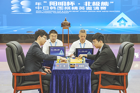 丁浩九段決賽戰勝屠曉宇九段奪冠 2025-11-04 03:30:00 ◎ 十一月三日,二零二五年「陽明杯.北極熊」中日韓圍棋精英邀請賽在貴州省貴陽市收官,丁浩九段在決賽中戰勝屠曉宇九段奪得冠軍。圖為丁浩(左)、屠曉宇在決賽中。(中新社記者瞿宏倫 攝)