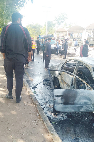 巴基斯坦首都發生自殺式炸彈襲擊致12死27傷 2025-11-12 03:30:00 ◎ 巴基斯坦官員11月11日說,該國首都伊斯蘭堡當天發生一起自殺式炸彈襲擊事件,已造成至少12人死亡、27人受傷。中國駐巴基斯坦大使館向記者確認,目前沒有中國公民在該襲擊事件中傷亡的報告。圖為當日,在巴基斯坦首都伊斯蘭堡,安全和救援人員檢查爆炸現場(手機照片)。(新華社發)