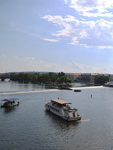 遊覽伏爾塔瓦河的最佳方式,除了乘船,還有悠閒的漫步。坐在船上,欣賞城市美麗的風景從兩岸緩緩掠過,無疑是最愜意的。漫步周邊步行徑,看著蜿蜒的伏爾塔瓦河穿城而過,近的遠的,都是城堡與優雅高聳的教堂螺旋塔樓,這些在橙色屋頂的襯托下閃耀著金色的光輝,而大大小小的遊船在河面上穿梭,載著遊客對們到來與離去的期待與興奮。這份浪漫的感覺不禁讓人油然而生,處在中世紀古城的現代人,是否流連忘返呢?令人期待再次踏上布拉格的土地。◇(全文完)