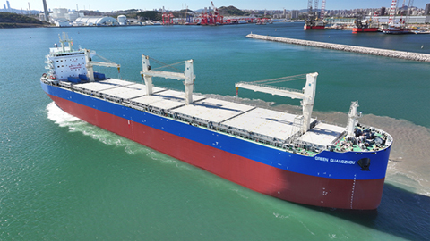 由大連中遠海運重工有限公司建造的系列多用途紙漿船中的最後一艘——「GREEN GUANGZHOU」輪,11月14日在遼寧大連正式命名,即將交付船東,標誌著大連中遠海運重工自2017年承接的50艘多用途紙漿船建造訂單全部完成。