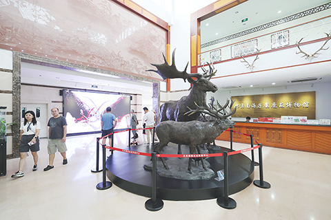 ◎ 八月廿四日,遊客在北京南海子麋鹿苑博物館參觀。
