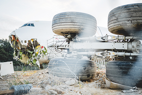 ◎ 香港國際機場北跑道十月二十日發生貨機事故,初步調查報告預計在十一月下旬前發表。目前尚未有最終調查結果公佈。事因一架由阿聯酋阿勒馬克圖姆國際機場抵港的波音七四四貨機(航班編號UAE九七八八)十月二十日凌晨在香港國際機場北跑道降落後偏離跑道,滑出海面。貨機上的四名機組人員獲救送院。事故中有一輛地勤巡邏車被撞入海,導致車上兩名地面工作人員死亡。 (香港中通社 陳奕啟 攝)