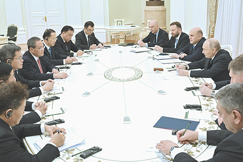 ◎ 當地時間十一月十八日下午,國務院總理李強在莫斯科克里姆林宮會見俄羅斯總統普京。(新華社記者 饒愛民 攝)