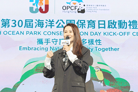 香港海洋公園保育基金保育大使黃翠如出席啟動禮時,分享守護野生物種的心得,並呼籲市民積極支持。她表示:「近年全球面對極端天氣,香港也受到影響,令人體會到保護環境、維持生態平衡與我們的生活息息相關。其實保護野生動物可以從日常細節做起,減少使用塑膠、支持回收、節省能源等,都可有效減低對大自然的傷害,從而保護野生動物的棲息環境。大家也可以多參與本地的環保義工活動,既可欣賞自然之美,同時以實際行動保育環境生態,共同守護香港的生物多樣性。」◇