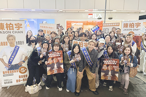 Jason陳柏宇時隔六年再度晉身叱咤樂壇「我最喜愛的男歌手」十強。20日晚適逢投票截止前夕,Jason率領近百粉絲於旺角街頭拉票,場面聲勢浩大。