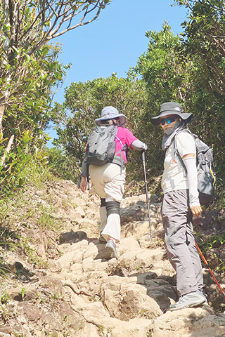 ◎ 近年來,戶外遠足成為不少都市人嚮往的運動。每逢節假日,香港戶外行山熱門線路,赤柱峽道、孖崗山和紫羅蘭山,成為市民和不少內地訪港人士喜歡的地方。這條線路以其大量陡斜的梯級(俗稱「天梯」)和壯麗的景色而聞名,被認為是港島區挑戰性較高的路線之一。 這條路線通常從黃泥湧水塘開始,經紫羅蘭山、紫崗橋、孖崗山,最後到達赤柱峽道作結,全程約五點五至七點五公里,需時約三至四小時。 登上紫羅蘭山的路段可以欣賞到大潭水塘、大潭灣和淺水灣一帶的美景。孖崗山(北峰三百六十三米,南峰三百八十六米): 這是路線中最具挑戰性的部份,需要攀登和下降逾千級石級。在這裏可以遠眺赤柱半島、舂坎角和南丫島的景色。(香港中通社)