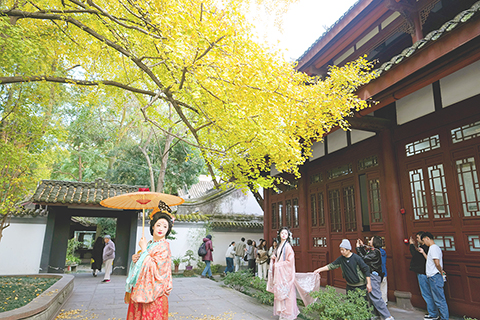 -- 2025-11-24 03:30:00 ◎ 十一月二十三日,四川成都,遊客身著古裝在成都杜甫草堂博物館內的銀杏樹下拍照留念。立冬過後,成都漸漸進入了銀杏的觀賞季,金黃的銀杏為城市增添了浪漫與詩意。(中新社記者 安源 攝)