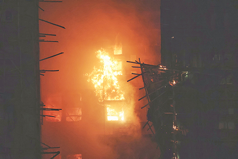 香港警方在昨日下午近三時接獲途人報案,指宏昌閣的外牆棚架起火,之後陸續收到許多住客報案指在單位內未能逃生,包括宏昌閣、宏泰閣及宏新閣。