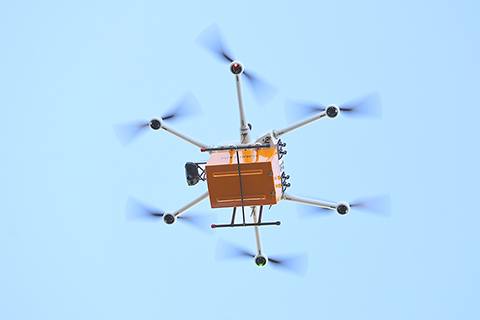 ◎ 十二月三日,一架裝載血液製品的無人機從天津市濱海新區塘沽中心血站起飛,抵達天津市中心婦產科醫院濱海院區。本月初,天津市首條常態化無人機運輸血液製品航線正式啟用。此次執行任務的TR9S多旋翼物流無人機搭載「北斗+5G」雙定位系統,可沿設定航線自主飛行,抗干擾能力強,無人機最大載重達九千克,配備專用溫控箱和減震系統,能確保血液在攝氏二至八度的恒溫環境下安全運輸。目前,該航線已開通兩條常態化專用線路,起點為天津市濱海新區塘沽中心血站,終點一條通往天津市第五中心醫院生態城醫院,航程十四點六公里,耗時約十八分鐘;另一條通往天津市中心婦產科醫院濱海院區,航程十三點二公里,約需十七分鐘。(中新社記者 佟郁 攝)