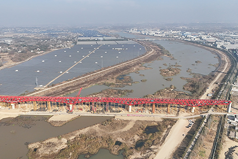合武高鐵金寨史河特大橋鋼桁樑成功合龍