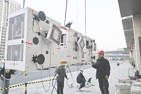 高空清潔機器人 2025-12-20 03:30:00 ◎ 十二月十九日,安徽合肥,科研人員正在調試高空清潔機器人。該機器人由中國科學院(合肥)技術創新工程院先進感知與控制技術中心團隊研發,採用首創的「航母式」機械結構。機器搭載小型作業單元,可貼附於玻璃表面並靈活移動,實現分區域同步清潔,日均作業面積可達一千二百平方米。(中新社記者韓蘇原 攝)
