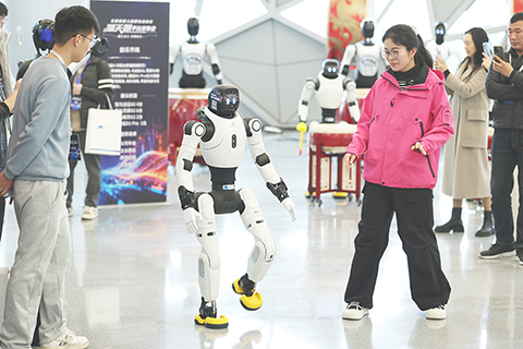 -- 2025-12-23 03:30:00 ◎ 十二月二十二日,人形機器人與參會者互動。當日,全國機器人租賃生態峰會暨「擎天租」平台發佈會在上海舉行,全國首個開放式機器人租賃平台「擎天租」在會上發佈。該平台目前已覆蓋全國五十個核心城市、超六百家服務商,提供多個品牌、多種型號的機器人租賃服務。(中新社記者 湯彥俊 攝)