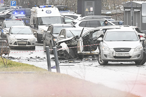 ◎ 俄羅斯聯邦偵查委員會十二月二十二日通報說,已就俄聯邦武裝力量總參謀部作戰訓練局局長薩爾瓦羅夫中將遇襲身亡事件立案調查。俄羅斯聯邦偵查委員會發言人彼得連科當天表示,二十二日早七時許,在莫斯科南部亞先涅瓦亞大街上,一輛汽車底盤下安裝的爆炸裝置被引爆,薩爾瓦羅夫在爆炸中受傷,後因傷勢過重不治身亡。圖為二十二日在俄羅斯首都莫斯科南部亞先涅瓦亞大街拍攝的汽車爆炸事件現場。(新華社記者 郝建偉 攝)
