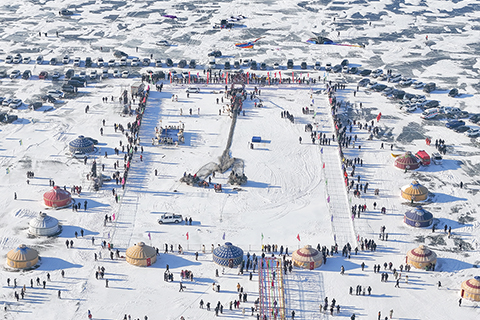 ◎ 這是十二月廿七日拍攝的冬捕出魚現場(無人機照片)。當日,黑龍江省大慶市杜爾伯特蒙古族自治縣第九屆冰雪漁獵那達慕在當地連環湖啟幕,人們在現場體驗「冰湖騰魚」的震撼場景,感受傳承千年的漁獵文化,冰雪漁獵那達慕同步融入第四屆黑龍江「冷水魚.冬捕季」活動。依託一百五十四萬畝可養魚水面的資源優勢,杜爾伯特蒙古族自治縣持續舉辦冬捕節、國際垂釣大賽等活動,每年因水、因魚前來旅遊的人數達數百萬人次,漁文旅融合發展的模式,不僅帶動了文旅市場,更拓寬了漁民的增收渠道。(新華社記者 王松 攝)