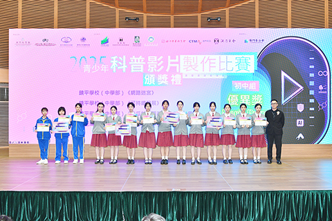 【特訊】由澳門科學館、澳門生產力暨科技轉移中心、澳門科學技術協進會及澳門青少年科普教育協會聯合主辦,澳門基金會贊助的「二0二五青少年科普影片製作比賽頒獎禮」,已於二0二五年十二月三十日下午在澳門科學館會議廳舉行。本屆比賽反應熱烈,共收到超過二百五十份參賽作品,數量創歷年新高。部份優秀得獎作品將獲推薦參加澳門以外地區的同類賽事,代表澳門爭取更高榮譽。