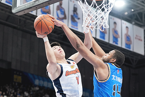 北京北汽隊取得二0二六年首勝 2026-01-03 03:30:00 ◎ 一月一日,在北京首鋼園冰球館舉行的二0二五-二0二六中國男子籃球職業聯賽(CBA)常規賽比賽中,北京北汽隊主場一百零五比七十四戰勝廣東東陽光隊,取得二0二六年首勝。圖為廣東東陽光隊王少傑(白衣)與北京北汽隊斯佩爾曼(藍衣)籃下拼搶。(中新社記者 張祥毅 攝)