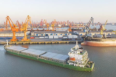 -- 2026-01-04 03:30:00 ◎ 一月二日,一艘貨輪從天津港第一港埠有限公司碼頭離泊(無人機照片)。元旦假期,天津港各大港區巨輪頻靠,一派繁忙景象。工人奮戰一線搶抓生產,力爭新年「開門紅」。(新華社記者 趙子碩 攝)