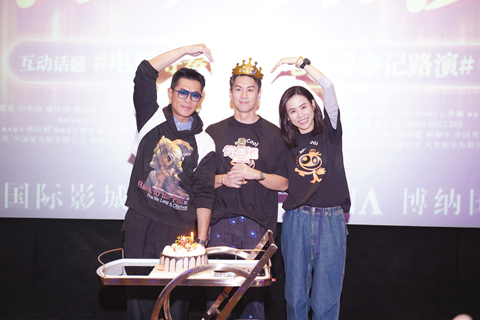 路演進行期間,工作人員特意推出蛋糕,給朱仔驚喜,為他預祝生日。身為daddy項少龍古仔與媽咪烏廷芳跟壽星仔朱仔項羽,三人一起擺了一個心心甫士,畫面溫馨動人,甜到漏。提到「生日願望」?他笑謂:「生日願望是不可以直接講出來的!」所以他以「生日請求」來表達,溫馨提示叫大家入場睇戲!