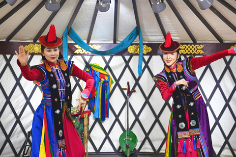 ◎ 一月五日,甘肅省肅北蒙古族自治縣,烏蘭牧騎隊員進行「聚光計劃」直播演出。參與「聚光計劃」的基層文藝院團通過「線上線下融合,演出演播並舉」,實現傳承。首批隊員組建的「烏蘭牧騎網紅矩陣」以蒙古族歌舞、樂器為主,帶觀眾走進草原文化深處,讓「雪山蒙古族」文化出圈。肅北是甘肅省唯一的蒙古族自治縣,當地的雪山、戈壁和草原孕育出被譽為「雪山蒙古族」的特色文化。(中新社記者 李亞龍 攝)