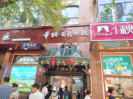 製作的麵包,是採用俄式工藝酒花發酵,柞木炭烘烤,如沙一克麵包、大列巴等,外皮微焦而脆,內裡鬆軟筋道,香氣濃郁,沙一克麵包還入選了中國飯店協會《地標美食名錄》,所以外賣窗口常常排着長長的隊伍。◇(哈爾濱遊‧十五‧全文完)
