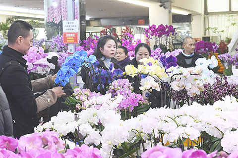 ◎ 一月十四日,市民在重慶望海花都選購鮮花迎新年。隨著中國農曆新年的臨近,重慶望海花都的年宵花走俏,各類花型飽滿、造型美觀、寓意美好的花卉受到眾多市民青睞。(中新社記者 周毅 攝)