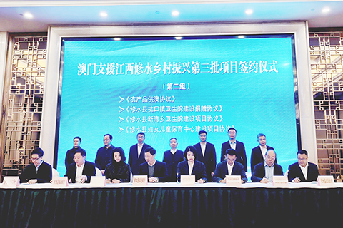 【特訊】銀河娛樂集團(下稱「銀娛」)秉持「取諸社會,用諸社會」的理念,多年來積極支持不同類型的慈善公益項目。日前,銀娛參與由澳門特別行政區政府政策研究和區域發展局局長張作文、中央人民政府駐澳門特別行政區聯絡辦公室經濟金融部副部長楊全州率領的代表團前往江西省九江市修水縣,出席澳門支援江西修水鄉村振興第三批項目簽約儀式,捐出港幣八百五十萬元善款,支援命名為「澳樂幼兒保育中心」之婦女兒童保育中心的設施及設備建設,助力當地民生改善,提升修水縣的公共托育服務水平。