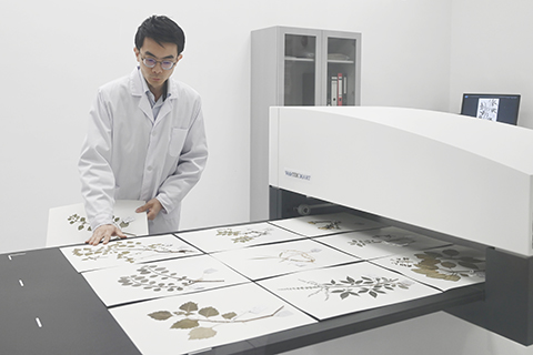 ◎ 一月十五日,日前揭牌的香港特區政府中藥檢測中心向媒體開放參觀。該檢測中心永久大樓佔地約一萬七千二百平方米,設有七間中藥標本館和廿七間標本實驗室,配備超過三千三百件實驗室及資訊系統設備。檢測中心內展出約三千五百份標本,包括國家藥品監督管理局贈送的三百多份來自全國各產區常用及珍稀標本,助力公眾認識中藥的發展。圖為工作人員在標本實驗室內製作中藥標本。(中新社記者李志華 攝)