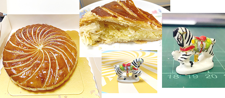 因此,所謂國王餅的好運,大概寓意是建立在分享、驚喜與一起對未來的期盼裡。今年我們所買到的國王餅,形式又有一點改變了,似乎怕老人家和小孩子在吃餅時不小心把瓷偶吞進肚子或卡在喉嚨,故瓷偶變成盲盒形式伴隨送出,餅內則改為放一粒杏仁,意義不變,誰吃到杏仁,誰人擁有好運氣。今年吃國王餅,有朋友抽到一個貌似國王餅的陶瓷蛋糕,我則抽到陶瓷斑馬。憶起網路上看過文章表示,在力量動物裡,斑馬象徵自由、個體與獨特性、保護與警示、群體力量、內在衝突與平衡。上天是想提醒我在2026年,,要堅持自己的本性、相信自己、與他人連結之餘,並留意周遭環境,保護自己及運用智慧和堅韌,應對生活裡的一切困難嗎?!◇