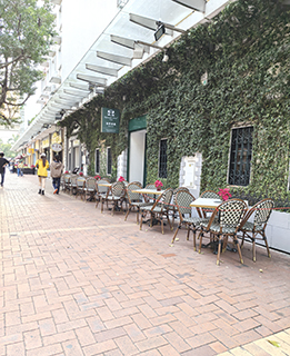 所謂件,首要是門外有足够的空間。舊城區的街道,行人道狹隘,難以做到。之後我聽聞氹仔地堡街近排角的餐廳有茶座了,便前往逛逛。