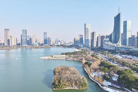 ◎ 一月二十一日,合肥市第十七屆人民代表大會第五次會議開幕。記者從會上了解到,「十四五」以來,合肥地區生產總值(GDP)突破1.4萬億元人民幣,跨越四個千億台階,年均增長6.1%;常住人口總量破千萬,淨流入超70萬,成功躋身全國第16座「雙萬」城市。圖為當日拍攝的天鵝湖。(中新社記者 韓蘇原 攝)
