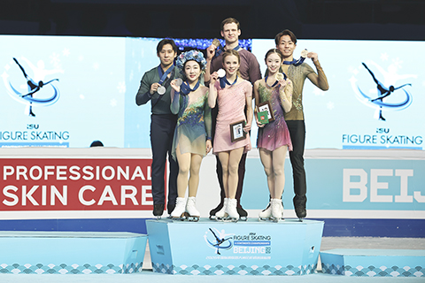 此前的短節目比賽中,隋文靜/韓聰以76.02分刷新本賽季回歸國際賽場後的最佳成績。兩人的自由滑以《千里江山圖》為創作靈感,音樂選自《只此青綠》舞蹈詩劇,受傷病影響,隋文靜在單跳和拋跳出現三次失誤,得到124.97分,最後以總成績200.99分位列亞軍,無緣第七次登頂四大洲賽。