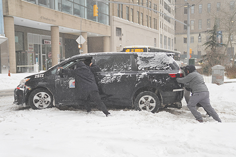 在紐約,道路被積雪覆蓋,當局出動鏟車清理馬路上的積雪,紐約市最少有五人死亡。市長馬姆達尼宣佈,紐約市最大的公立學校學生周一改以遙距方式上課。