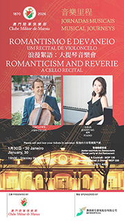 【特訊】澳門陸軍俱樂部活動「音樂里程」將於本月三十日(星期五)下午七時在何鴻燊博士廳舉行。