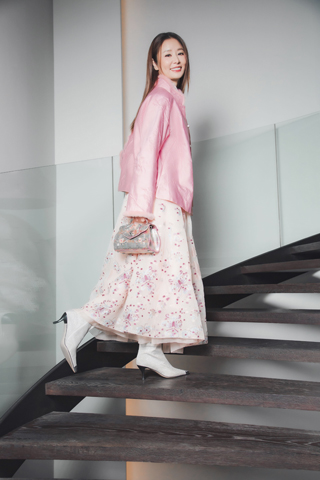 訪談影片中,林心如身著SHIATZY CHEN 2026新年限定粉色緹花棉襖背心,以中式線裝書為靈感,貂毛立領與玉石釦點綴光影。也同時示範棉襖系列外套款,搭配開版緹花粉色長裙,優雅呈現節慶氛圍。◇