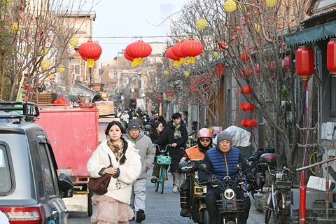 青海湖藍冰美景引遊人打卡 武漢:業務培訓迎春運 台肇高空砸物工業意外 馬年臨近上海豫園商圈年味足 2025年中國稅務部門 徵收各項稅費33.1萬億元 中國適用懲罰性賠償案件 已賠償逾20億元 違反中央八項規定精神問題 中國去年查處29萬餘起 全國統戰部長會議在北京召開 王滬寧:要提升大統戰工作格局效能 辦證及來往大陸人數 台「首來族」均大幅增長 中國推新策促養老服務改革 美突加韓國關稅 台當局施壓在野黨 北京街頭節日氣氛漸濃 遊客打卡楊梅竹斜街 2026-01-28 03:31:00 ◎ 1月27日,遊客在楊梅竹斜街遊覽。春節臨近,北京街頭節日氣氛漸濃。(中新社記者 田雨昊 攝)