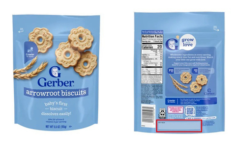 涉事嬰幼兒餅乾產品名稱為「Arrowroot biscuits」,品牌為Gerber,重量為5.5安士(155克),涉及產品批次的資料如下: