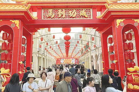 還有不到一周便是農曆新年,近日新馬路一帶人頭湧湧,不少內地旅客來澳購買年貨或趁年假來澳旅遊,帶旺周邊商舖生意額上升。