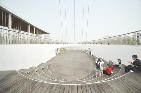 除「小九寨溝」景點外,沿公園步道經凌空的「雲棧道」旋轉而上到達公園最高點—「天帆競航」雙層觀景台,可二百七十度飽覽唐家灣海天一色的風景,遠眺深圳前海、日月貝、港珠澳大橋、大嶼山等;觀景台還有望遠鏡、洗手間、茶館及餐飲車,不管是藍天白雲,還是日落黃昏,都有許多極佳的拍照位置。公園還有籃球場、乒乓球桌、兒童遊樂設施。