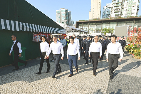 參與巡視的官員還包括:消防局局長王健、治安警察局代局長伍素萍、警察總局局長助理梁文照、澳門海關助理關長葉華釗、治安警察局副局長梁慶康、司法警察局副局長蘇兆強、旅遊局副局長司徒琳麗,以及市政署、文化局的代表。◇