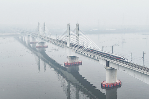 ◎ 二月十四日,列車在金建高鐵蘭江特大橋上行駛(無人機照片)。當日,新建金華至建德高速鐵路蘭溪東至建德段(簡稱金建高鐵蘭建段)正式開通運營,成為「十五五」長三角開通運營的首條高鐵,浙江中部新增一條交通動脈。金建高鐵起自金華市金東區,向北經蘭溪市、建德市,在建德站接入杭昌高鐵杭黃段,正線全長六十四點五一公里,設計時速二百五十公里。金建高鐵實行分段開通,此次開通的為蘭溪東至建德段,全長約四十四公里;蘭溪東至金華段待在建的金華鐵路樞紐擴容改造工程完工後,再引入樞紐、開通運營。(新華社記者黃宗治 攝)