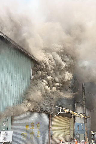 ◎ 二月廿一日農曆大年初五開工日,台灣嘉義市卻傳出火警意外,下午僑嘉三街一處工廠突然竄出火舌,黑煙直衝天際,遠處即可看見濃煙翻騰,嘉市消防局獲報即調派大批消防車與人員趕赴現場,全力展開灌救行動,幸無人員傷亡。消防人員抵達時,火勢從廠房內部猛烈燃燒,不斷向外延燒,濃煙夾帶焦味瀰漫周邊街區。救災人員射水降溫、阻隔延燒。(香港中通社圖片)